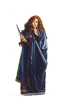 Arionrhod has an 18 charisma and comeliness relative to males and a 15 relative to females. This is due to the special properties of one of the daggers she wears - the Witchblade. She rarely plays upon her looks, however, since she knows the enhancement is due to magic and not actually due to her real appearance. She tends to be fairly serious most of the time, except when in the company of her close friends. She is bitingly sarcastic when riled up, and has a ready temper when opposed. Lately, however, even her friends have noticed a distinct air of bitterness and preoccupation about her.